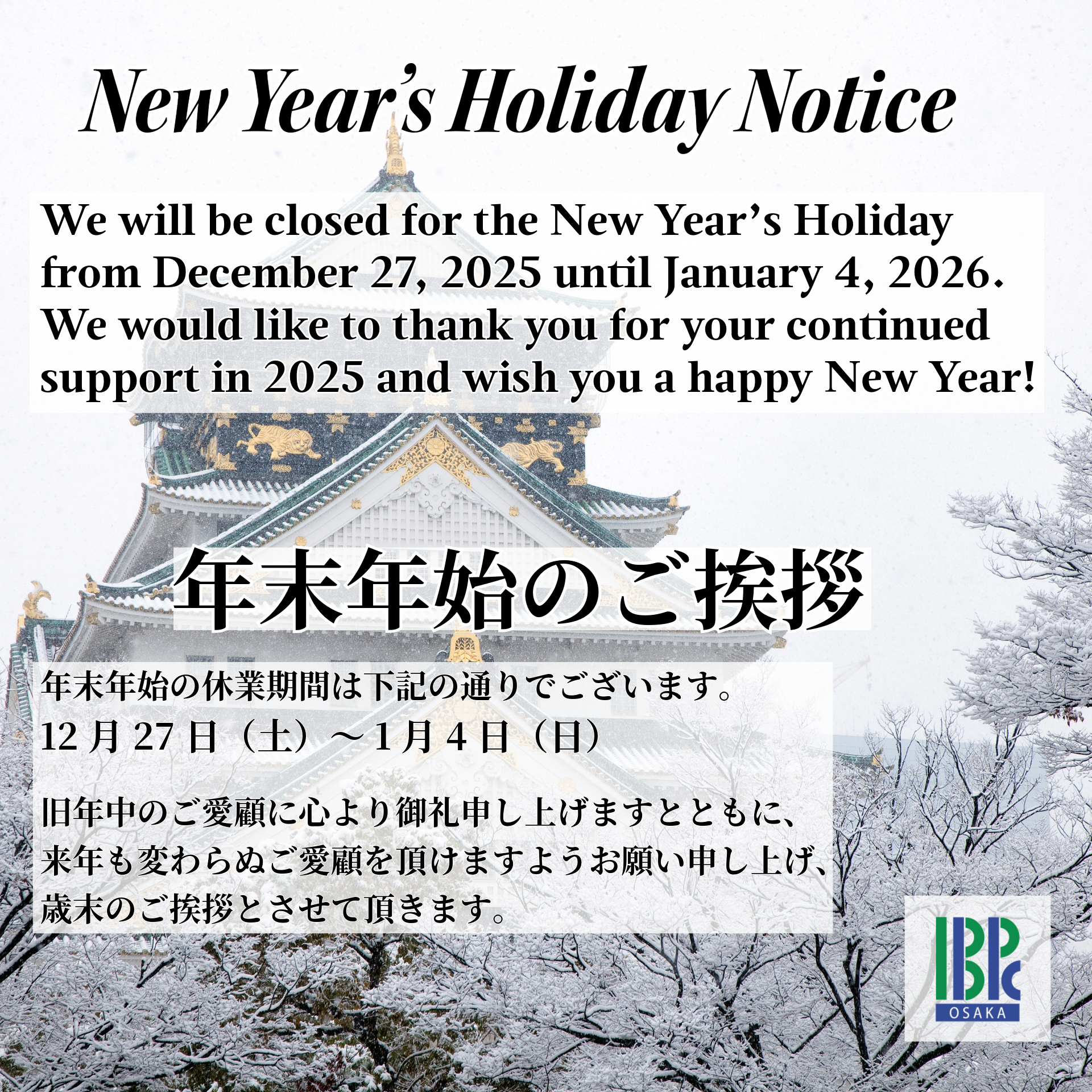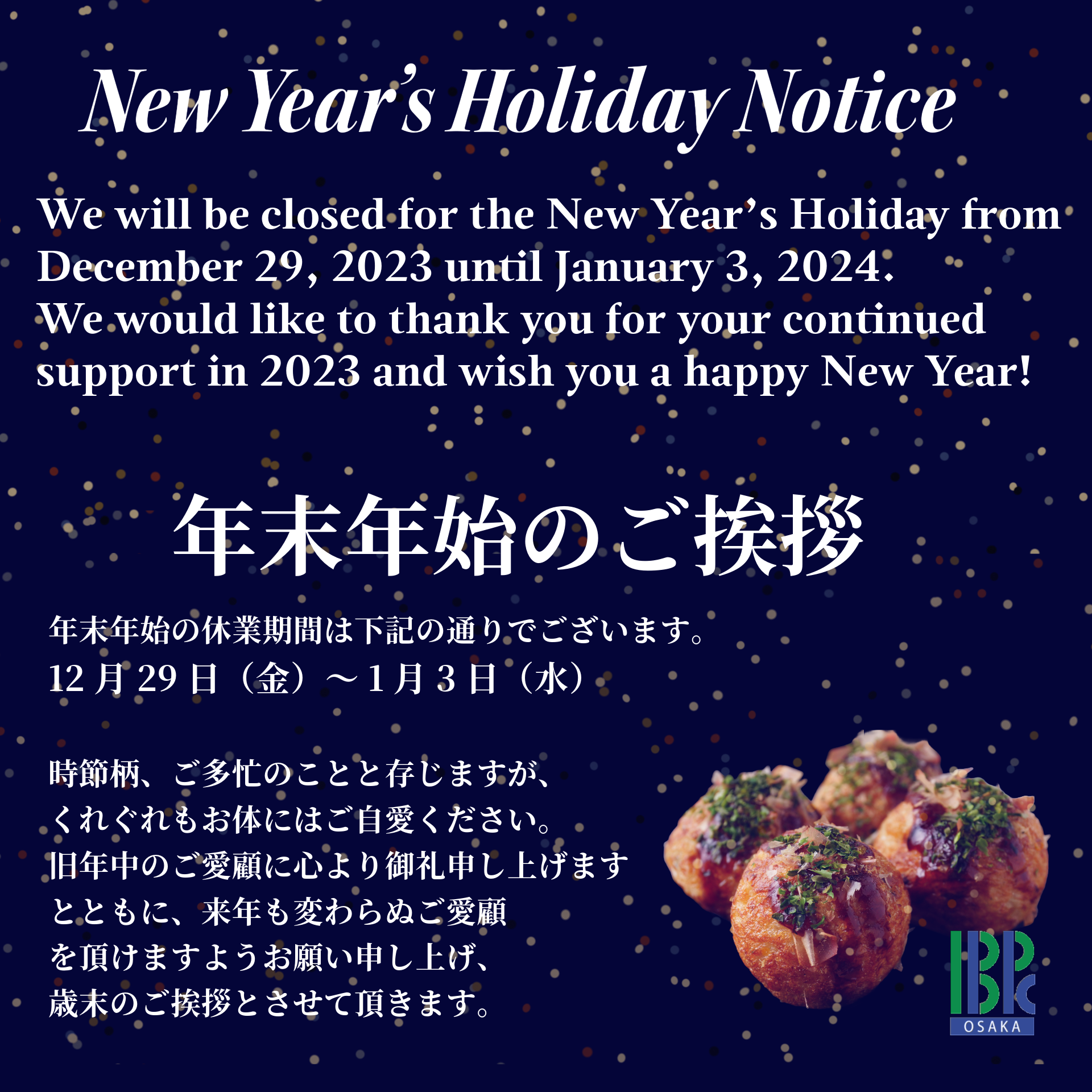 IBPC(International Business Promotion Center)大阪は、大阪とアジアをはじめ世界各都市との貿易・産業・コミュニケーション活動の強化を目的として大阪市により設立された組織であり、2003年4月に西日本最大の展示会場「インテックス大阪」を運営管理している一般財団法人 大阪国際経済振興センターの国際部として誕生しました。※下記参照